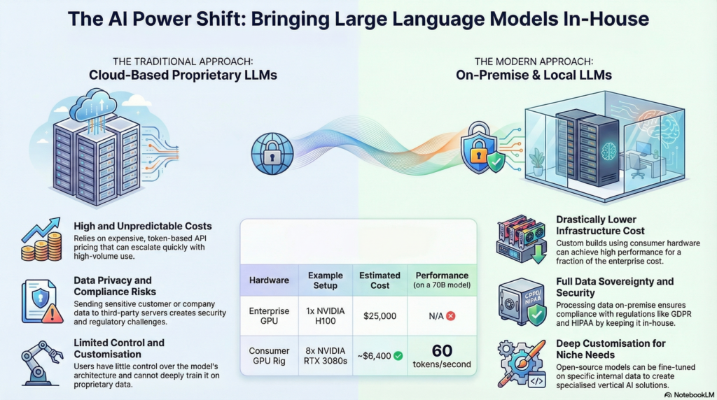 For businesses processing millions of tokens daily, the crossover point where self-hosting becomes more economical than proprietary APIs typically occurs within 6 to 18 months. Hardware like NVIDIA RTX 4090 arrays or AMD EPYC servers allows enterprises to build production-ready AI systems for under $10,000, achieving stable inference speeds of up to 60 tokens per second for models like DeepSeek-R1.
